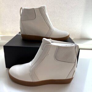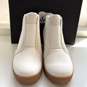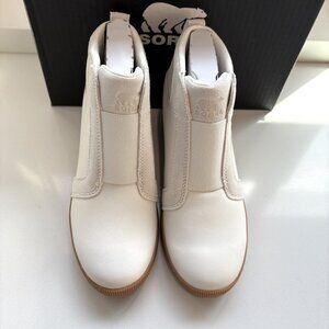 NEW Sorel Out N About Pull On Wedge Booties Leather Ankle Chelsea Boots Sea Salt Size 8 NIB