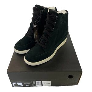 Sorel Out N About Wedge Black Sea Salt Suede Shoes Size 10