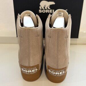 NEW Sorel Out N About Wedge Booties Suede Ankle Lace Up Boots Omega Taupe Gum Size 8.5 NIB