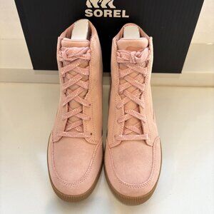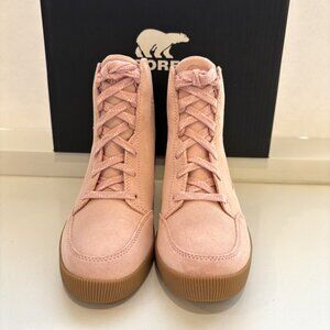 NEW Sorel Out N About Wedge Booties Suede Ankle Lace Up Boots Faux Pink Gum Size 8 NIB