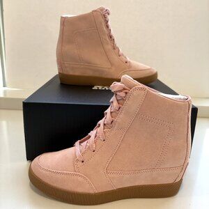 NEW Sorel Out N About Wedge Booties Suede Ankle Lace Up Boots Faux Pink Gum Size 9 NIB