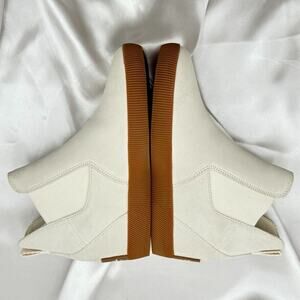 These Sorel Out N About Wedge II booties are in good preowned condition. The upper suede shows some light staining, but overall, the shoes are well-maintained and ready for their next adventure. Please refer to the pictures for the most accurate description of the shoes' condition. Sold as pictured, without the original box.