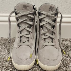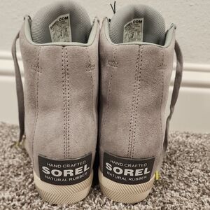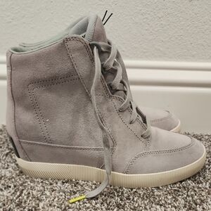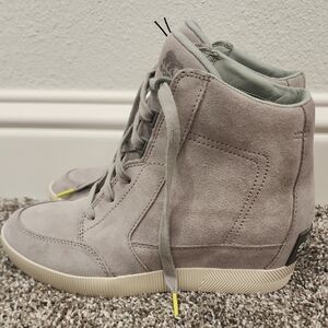 NWT! Experience the perfect blend of style and comfort with Sorel's gray wedge shoes. These shoes feature a sleek, minimalist design with a durable construction, making them ideal for casual urban outings. The versatile gray color and clean lines ensure they complement any outfit effortlessly.