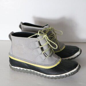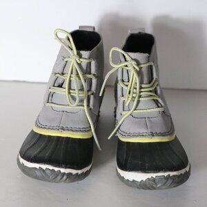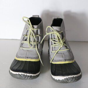 Sorel Out N About Womens Ankle Boot 6.5 Gray Canvas Lace Up Waterproof Snow