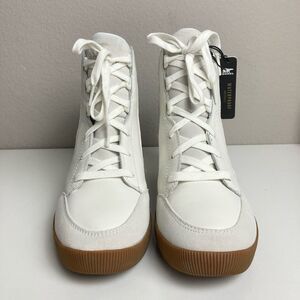 Sorel Out N About Women’s Wedge Leather Suede Lace Up Boot in Sea Salt/Gum 10.5
