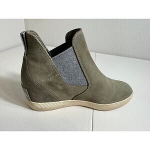 Sorel Out N About slip on wedge bootie stone green waterproof suede leather 7.5