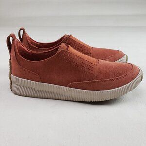 Sorel Out n About Slip On Shoe Womens 10 Rust Suede Comfort Casual Sneaker