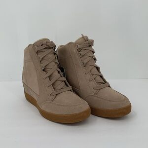 Sorel Out n About hidden wedge ankle boot sneaker Taupe suede platform new 8.5