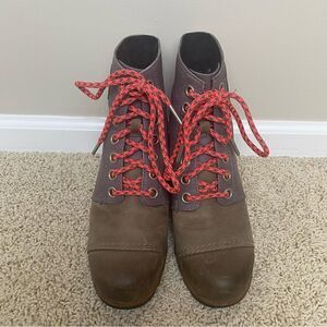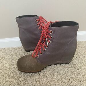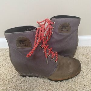 Sorel PDX Lace up Wedge Lexie Wedge Quarry Pink Leather Canvas 8.5