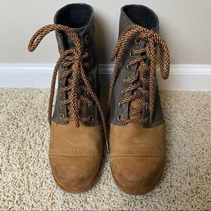 Sorel PDX Wedge Boots Lace Up Lexie Wedge Elk Camel Brown 9