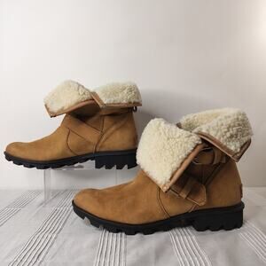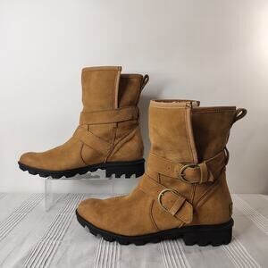 Sorel Phoenix Moto Boots Womens 11 Soft Suede Sheerling & Microfiber Lined Brown