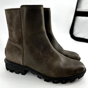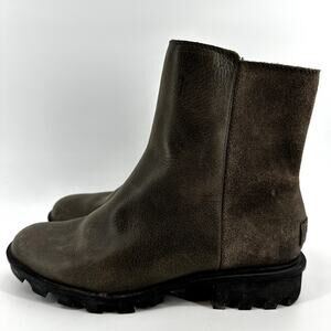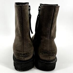 Sorel Phoenix Zip Ankle Booties Round Toe Heeled Suede Leather Burro Gray 7.5