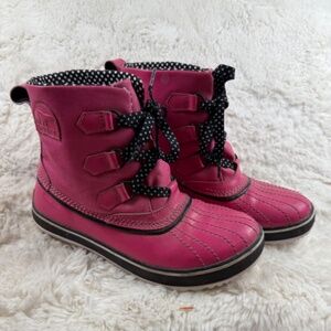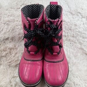 Sorel Pink Waterproof Lace Up Rain Boots Polka Dot Women's 8.5