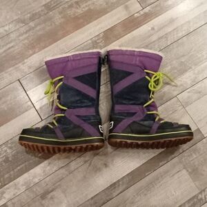 Sorel Purple and Blue Kid Core Tall Fur Winter Boots Size 6