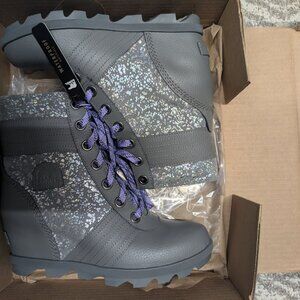 Brand new never worn other than to try on. Sorel tag still attached. No price tag attached as these were shipped to me. Such a fun unique look.