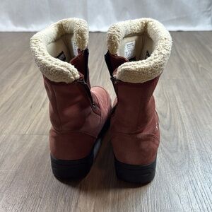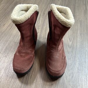Warm suede boots with plush cream lining. Ideal for winter wear.