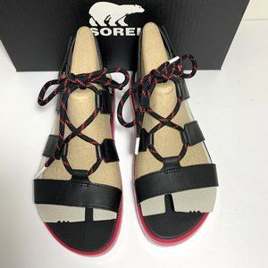 Sorel Roaming Lace Sandals Leather Straps Black Punch Pink Size 7.5 NEW