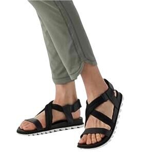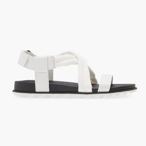 🍑 Sorel Roaming Decon Women Flat Sandal Size 6.5 White Fabric/Leather Adjustable Strap Padded Footbed Lug Sole New.