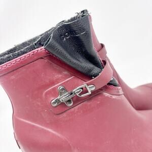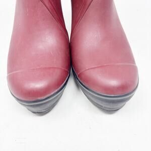 Sorel Rubber Boots Size 9 Burgundy Leather Chunky Platform Heeled Rain