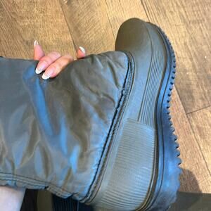Get ready for winter with these Sorel dark gray rubber snow boots! These boots are in great pre-owned condition and have removable wool inserts to keep your feet warm and cozy. Perfect for any winter activity, these boots will keep you stylish and comfortable all season long. Don't miss out on this amazing deal!