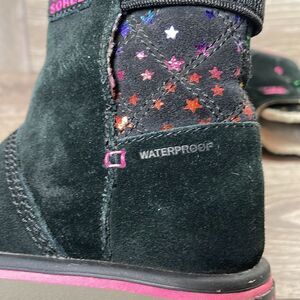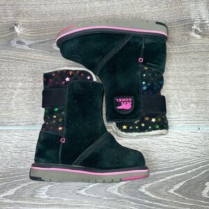 Sorel Rylee Waterproof Black Suede Warm Lined Pink Stars Toddler Girl Sz 8 Boots