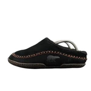 Sorel Shoes Mens 8 Slippers Falcon Ridge Slip On Leather Faux Fur Casual Black