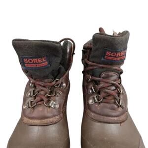 Used Sorel Shoes Womens 7 Boot Winter Snow Vintage Kaufman Leather Lace Up Lined Warm