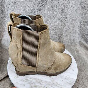 Sorel Shoes Womens Size 5.5 Tan Leather Wedge Chelsea Boots *GUC*