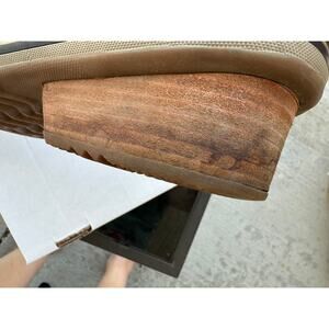 Condition: Slight darkening to wood heel from normal wear; does not affect function or durability. The tread is solid. Laces and waterproof seams are intact. Liners are clean and odor-free.
