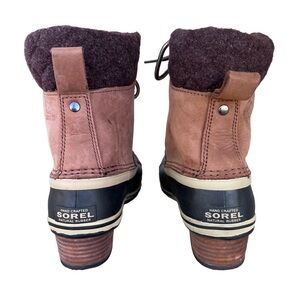 Sorel Slimpack Lace Leather Winter Snow Boot Waterproof Size 6 Tan Black