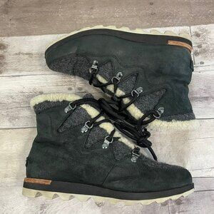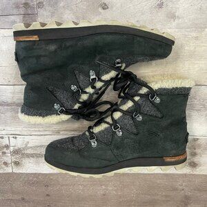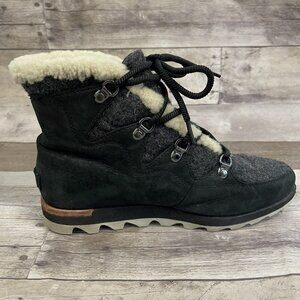 Sorel Sneakchic Alpine Wedge Ankle Boots Bootie Wool Leather Black Size …