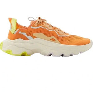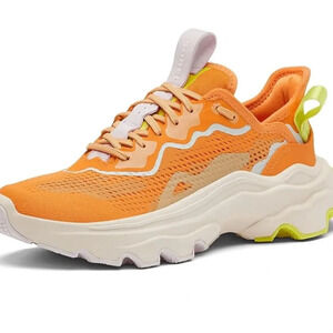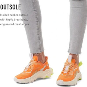Step up your footwear game with these Women's Sorel Kinetic Breakthru Day Lace Shoes Sneakers. The vibrant orange color and athletic design make them perfect for sports or leisure activities. They feature a low-top shoe shaft style with lace accents and a comfortable cushioned sole.