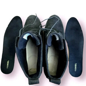 Sorel Suede Leather Waterproof Wedge Heel Ankle Bootie Lace Up Size 9 Black