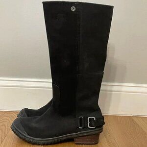 Sorel Slimboot Black Suede Leather Tall Waterproof Moto Riding Boots