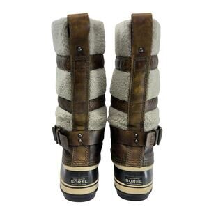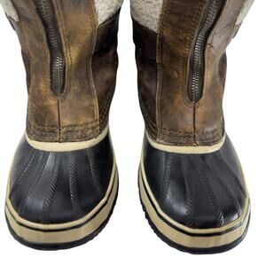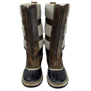 Sorel Helen Tundra II Leather Sherpa Tall Winter Duck Waterproof Boots Size 9 In Good pre-owned condition. Light wear on the upper and sole. Has minor scratches, scuffs, and creases from use. There are light marks inside.