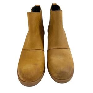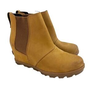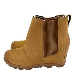 Sorel Tan Joan of Arctic Nubuck Leather Wedge Booties Pull On Round Toe Size 9