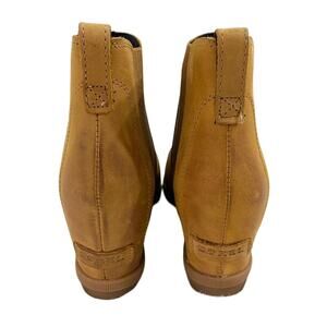 Sorel Tan Joan of Arctic Nubuck Leather Wedge Booties Size 9 Pull On Round Toe