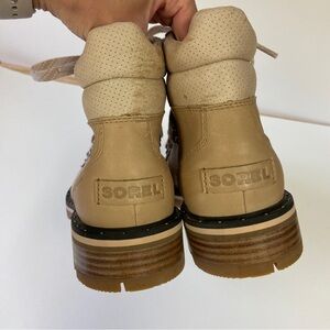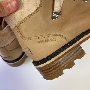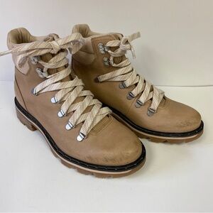 Stylish tan lace-up boots. Durable and comfortable. Perfect for any adventure.
