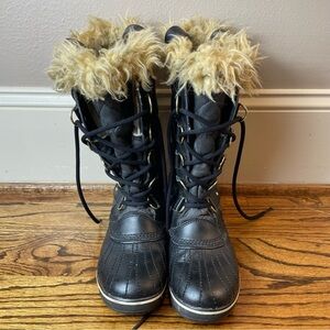 Sorel Tan and Black Faux Fur Boots