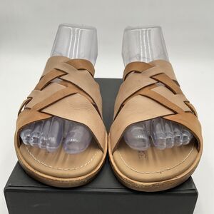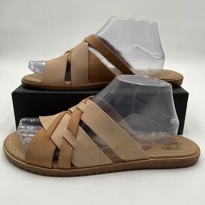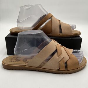 Stylish Sorel sandals with crisscross straps. Comfortable and versatile for any occasion.