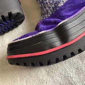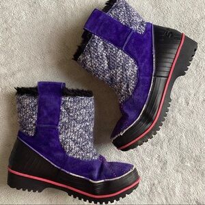Sorel Tivoli II Suede Fur Lined Waterproof Pull-On Boot Purple Metallic Knit 6