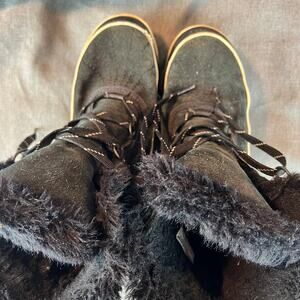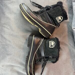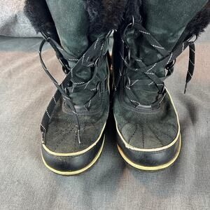 Sorel Tivoli II Womens Size 11 Waterproof Snow Boots Black Suede Faux Fur