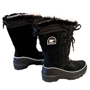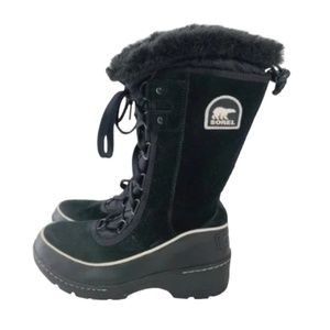 Sorel Tivoli III High Black Suede Leather Faux Fur Snow Cuff Winter Boots, Size 5