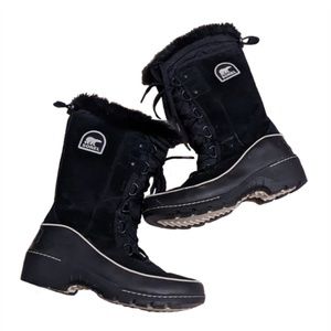 Sorel Tivoli III High Black Suede Leather Mid-Calf Lace Up Winter Snow Boots