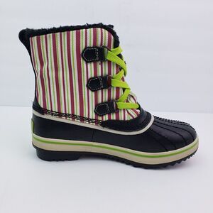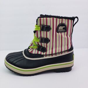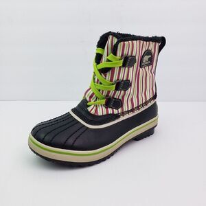 Sorel Tivoli Pac Girls Size 2Y Black Pink Green Striped Winter Snow Boots NY1819