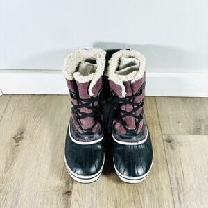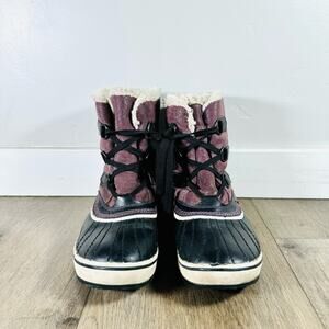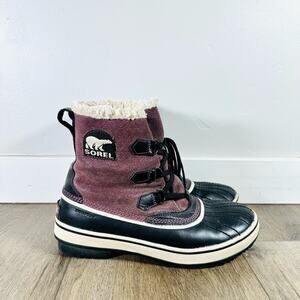 Sorel Tivoli Purple and Black Fur Lined shiny suade Waterproof Boots woman’s 9
