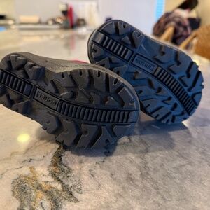 Waterproof synthetic textile upper with 200g insulation. Keeps feet warm and dry with excellent traction for playing in snow, mud, and grass.