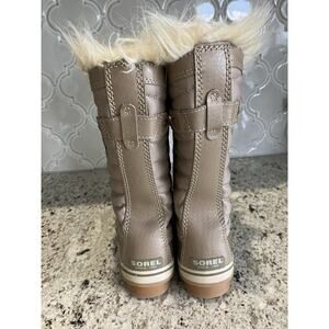 Sorel Tofino II Boots Women’s 6 Taupe Waterproof Winter Faux Fur Cuff