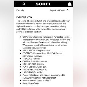 Sorel Tofino II Faux Fur Lined Waterproof Boot in Black Stone Women’s size 9