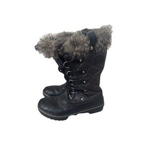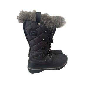 The Sorel Tofino II Waterproof Winter Snow Boots in Women's Size 8.5 are a stylish and functional choice for cold weather. With a mid-calf shaft style and lace-up closure, these black boots feature faux fur trim and are designed with waterproof construction for added warmth and protection. The Sorel brand is known for high-quality footwear, making these snow boots a reliable option for outdoor winter activities like snow.
